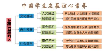 就作文命题形式看,40多年来大致经历了这样几个阶段,即命题作文、材料作文、话题作文和任务驱动型(材料)作文“各领风骚”若干年的阶段。今年三套全国卷,全部是任务驱动型(材料)作文,任务要求则分别是写发言稿、演讲稿、书信,这体现了重视语文的交际功能、重视发展学生语文的实际运用能力的导向。之所以如此,实际上与新一轮课程改革及考试改革(简称新课改、新高考)的大背景有关。新课改、新高考的方向,一言以蔽之,是培养和考查学生的两类核心素养,一类是“中国学生发展核心素养”(详见下表),另一类是高中各学科《课程标准》所规定的“学科核心素养”。