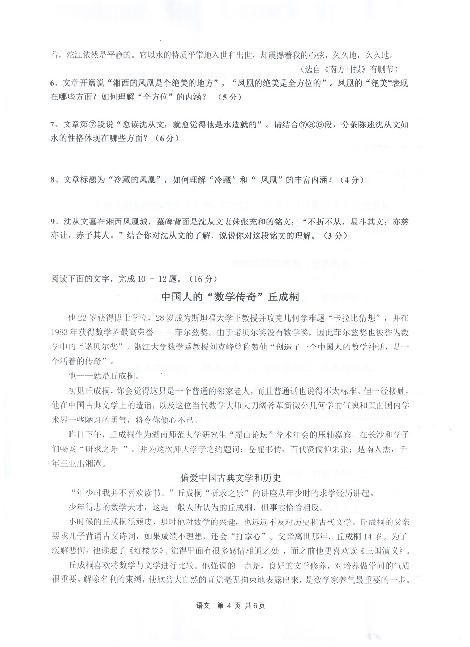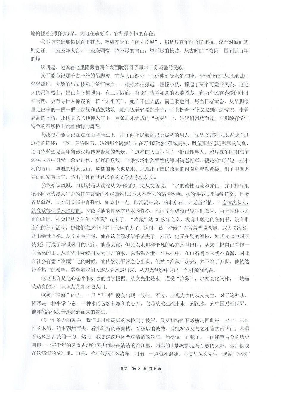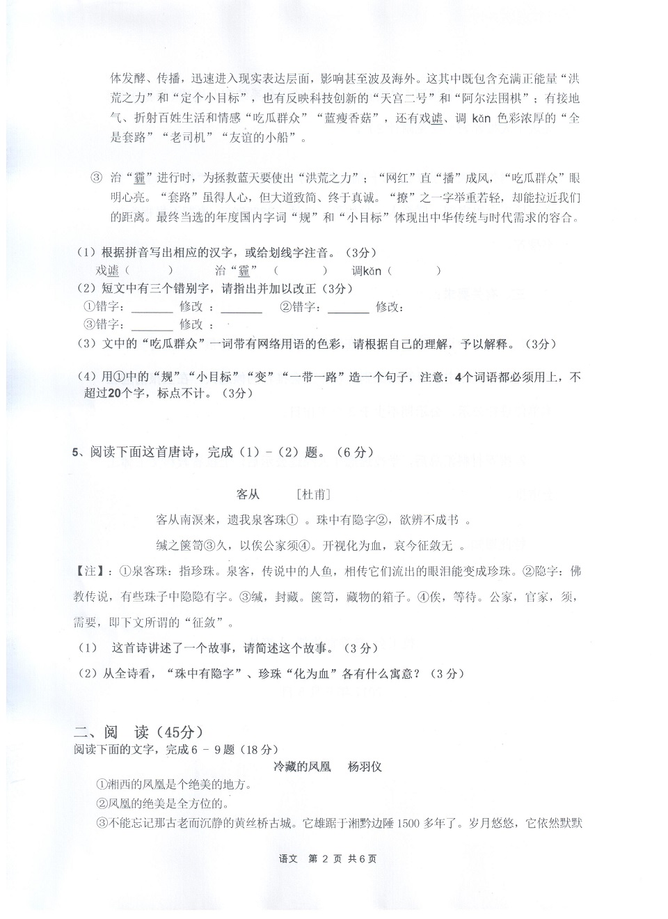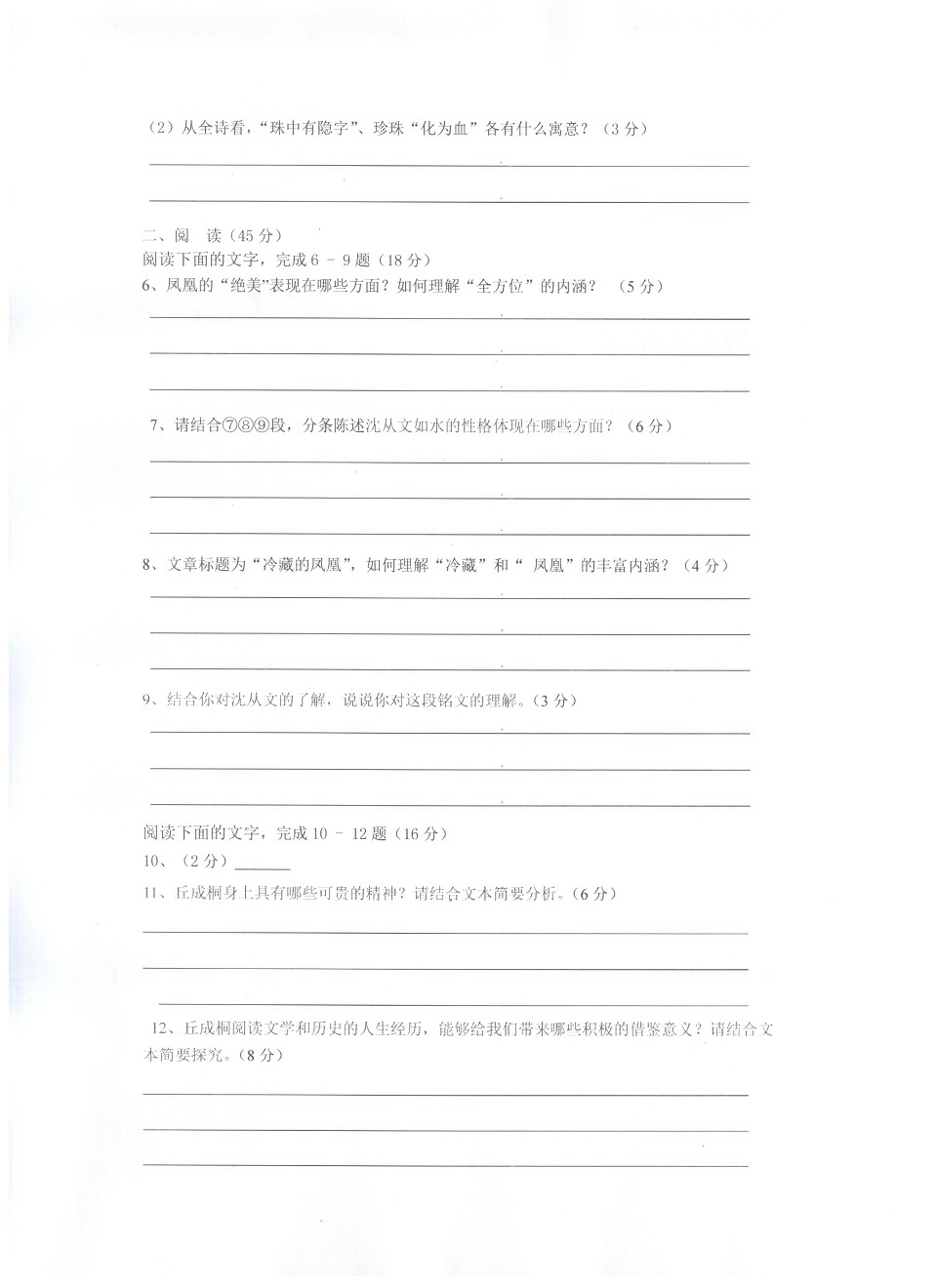 安徽师范大学附属中学2017年自主招生考试语文试题、答题卡、参考答案