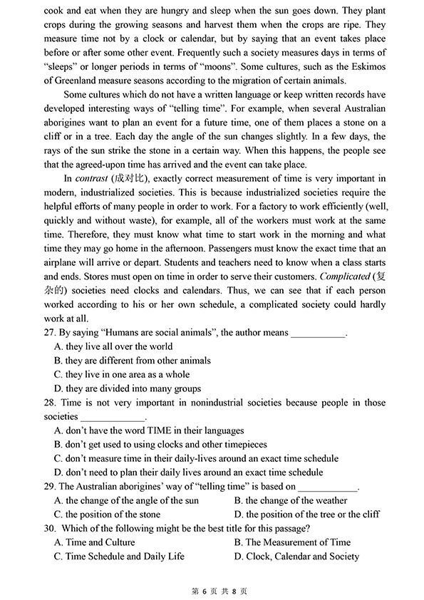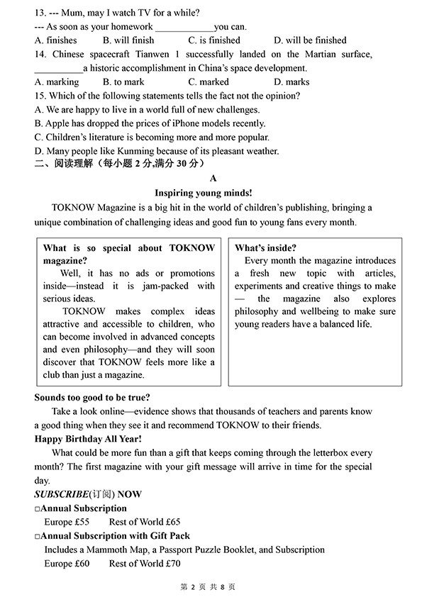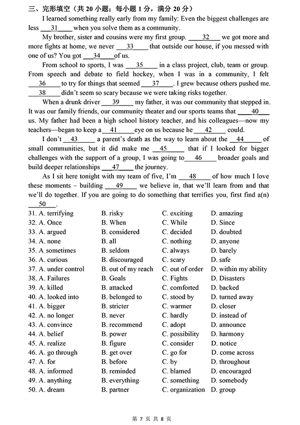 安徽师范大学附属中学2021年高中自主招生考试英语试题.pdf