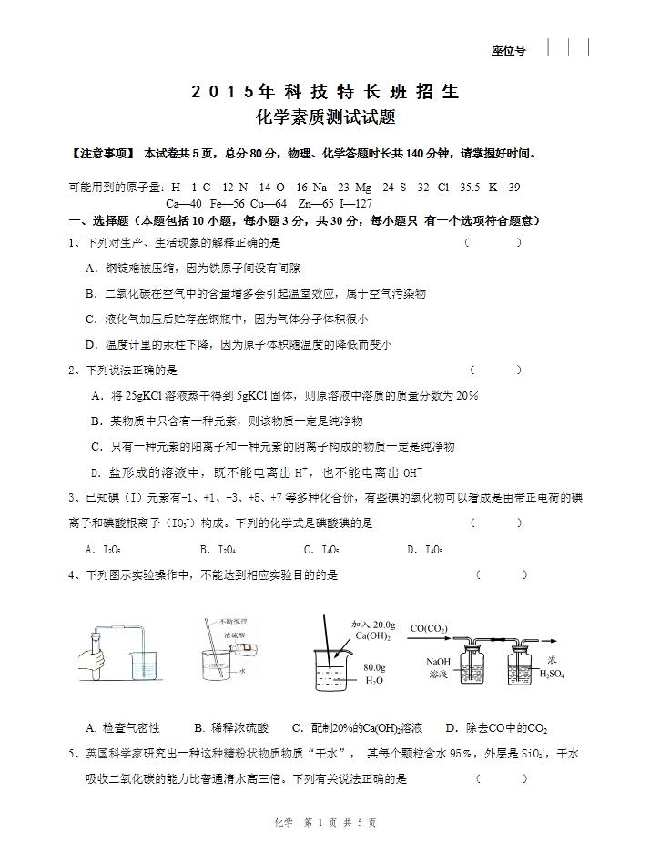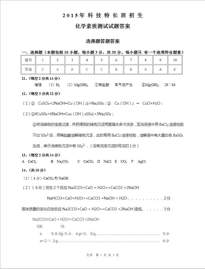 后一记录->2015年科技特长班招生数学素质测试试题及答案