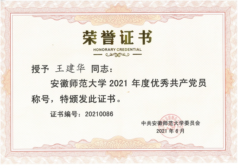 本网讯(办公室 李居旖)为发挥先进典型的示范引领作用,展现先进典型的精神风貌,安徽师范大学党委对2021年度优秀共产党员进行表彰,安徽师范大学附属中学王建华、王立昌、张辉3位同志被授予安徽师范大学2021年度优秀共产党员称号。