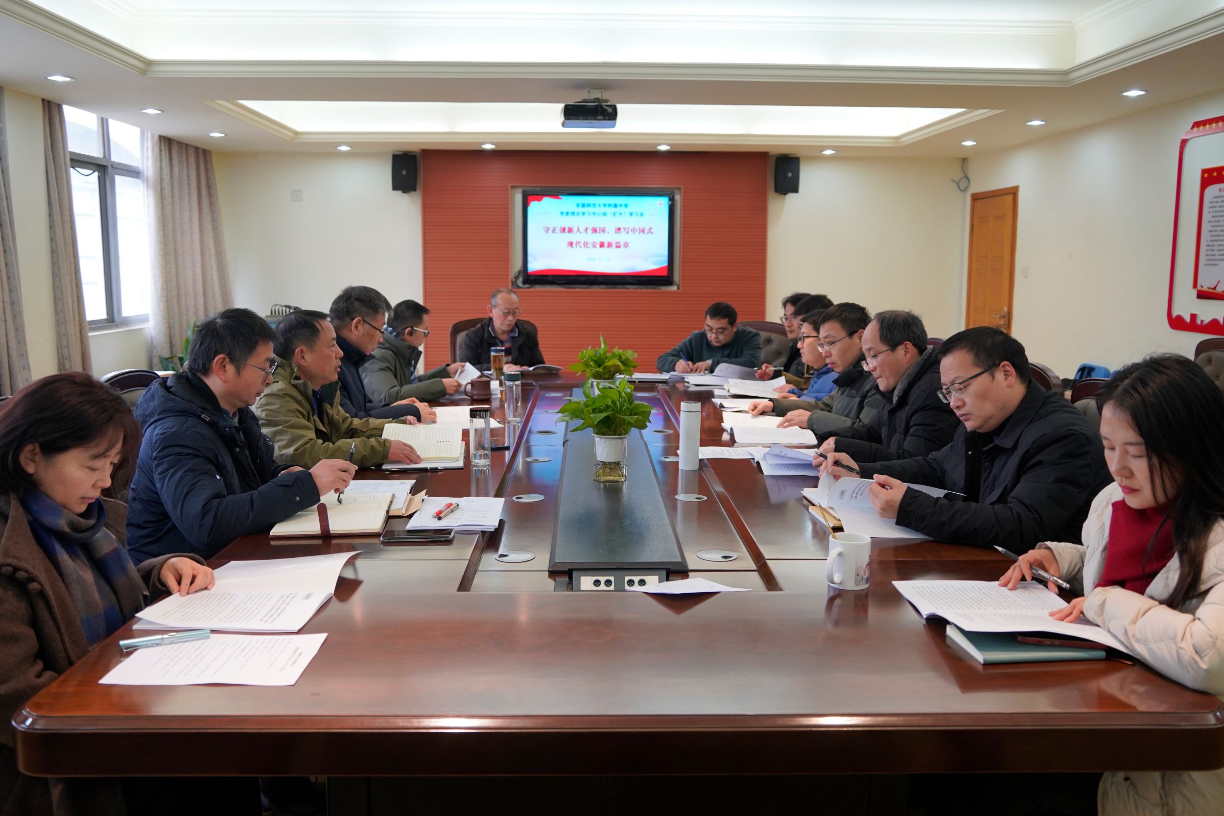 本网讯(党委 李居旖)12月23日,安徽师范大学附属中学党委在竟成楼四楼会议室召开理论学习中心组(扩大)学习会。校领导、党委委员、中层干部及党支部书记参会,会议由党委书记夏吉中主持。