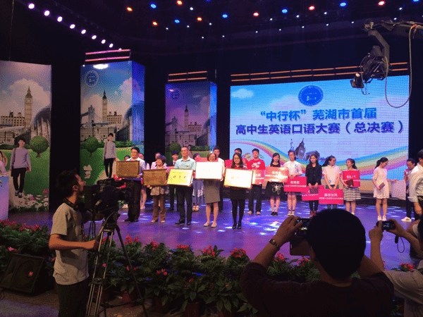 本网讯(德育处/喻磊 团委/谢莉)5月23日,由芜湖市广播电视台主办的“中行杯芜湖市首届高中生英语口语大赛”决赛在芜湖广电中心落下帷幕。我校学生赵元媛名列总分第二,并获“最佳发音奖”,吴飞璇和朱李普芸获优秀奖,我校获优秀组织奖。
