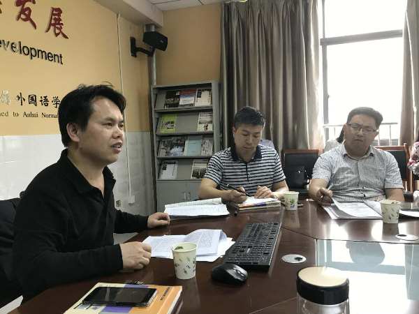 本网讯(教科研室 周训宜/张海 )5月21日下午,“严景东名师工作室”在安徽师范大学附属外国语学校城东分校(初中部)开展2019年第三次全员研修活动。参加本次研讨活动的除了“严景东名师工作室”的全体成员,还有来自马鞍山二中的盛庆丰老师及其带领的团队学员,从安庆一中专程赶来的刘磊、谢永红两位老师。安徽师范大学文学院教授叶帮义受邀指导。