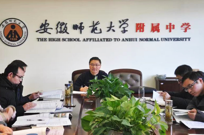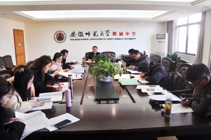 本网讯(政治组 王为民)为进一步促进对新课标新教材的研讨,深化课堂教学改革与研究,发挥名师工作室在教师专业成长和教育科研中的示范、引领、辐射作用,提升工作室成员的教育教学水平,12月15日下午,芜湖市“王为民名师工作室”在安徽师范大学附属中学行政楼四楼会议室开展“让议题走进教学”专题研修活动。活动由安徽省特级教师、正高级政治教师王为民主持,芜湖市大组副组长黄必向出席活动,全体工作室研修成员参加了本次活动。