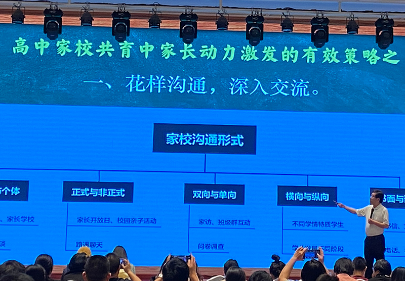 教育部中学班主任培训专家委员会核心成员张红教授作为特邀嘉宾主持了本次会议。她强调这次研讨为参加培训的班主任架设了理论和实践的桥梁,搭建了班主任专业成长的阶梯。15日上午,中国青少年研究中心研究员洪明教授作了主题为《协同育人模式下学校如何指导家庭教育》的专家主题演讲。洪教授从吃透国家政策,读懂家校关系和开展专业指导三个方面探讨家校协同育人模式。洪教授的讲座高屋建瓴,带领参加培训的一线教师把握前沿理论,直接切入到问题本质。在后面的讲座中,来自全国各地的共九位优秀班主任分享了家校共育的真实案例和经验。他们把案例提炼成模式,让理论可操作化,从本源上讨论最普遍的教育问题,如:家长会怎样开才能提升效果,家校沟通该把握哪些根本要点,怎样从冲突走向协同,建立平等信任的家校关系,如何把对手变成队友,共建孩子的成长支持体系等。